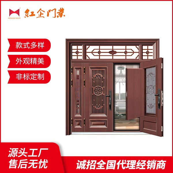 紅企門業一直堅持“信譽為本,客戶為先”的經營理念和生產理念,先后自主研發生產了具有不同風格的中高規格鋼板大門、非標實體門、環保型室內門等。